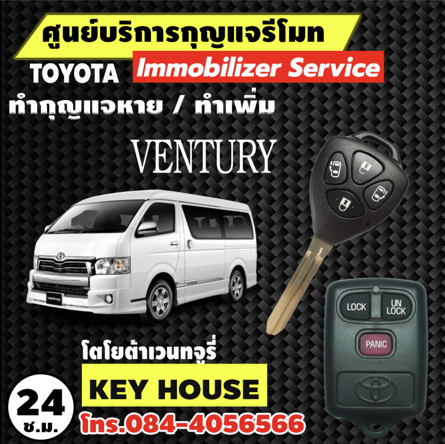 ทำกุญแจโตโยต้า เวนทจูรี่ Ventury หาย | ทำใหม่ ราคาถูก ช่างทำกุญแจรีโมท